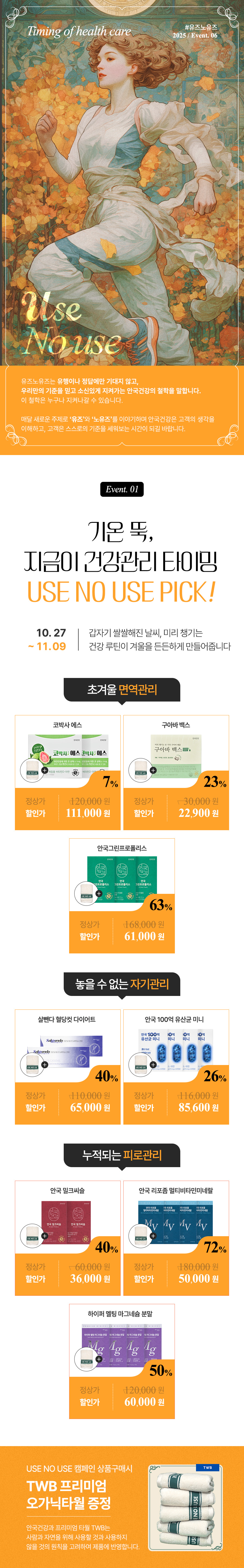 NO USE : 몸에 좋은걸 챙겨 먹기보다 몸에 좋지 않은걸 멀리 하려 합니다. 그래도 몸에 좋은것도 생각날때 마다 잘 챙겨 먹어요 2025-10-28 10:47:42