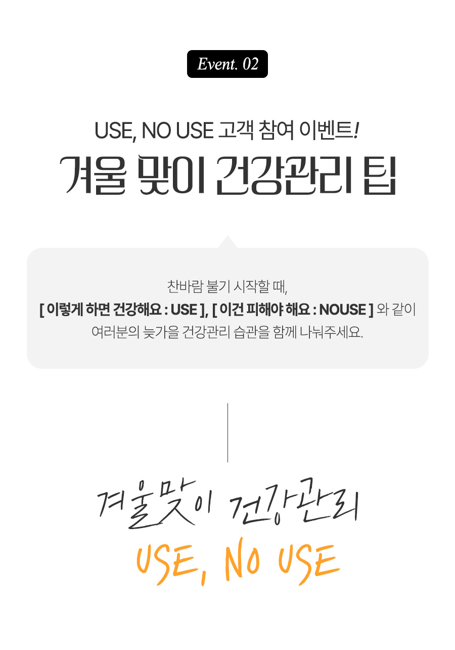 USE : 비타민 자주 챙겨 먹고 옷 따뜻하게 입기