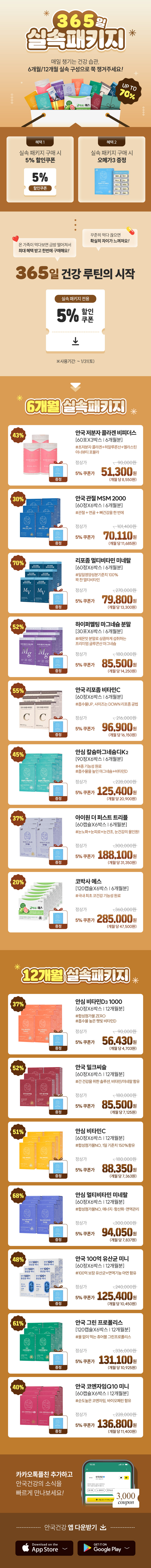 [실속패키지_12개월](+초임계오메가3) 안심 비타민D3 1000IU 60정 6박스