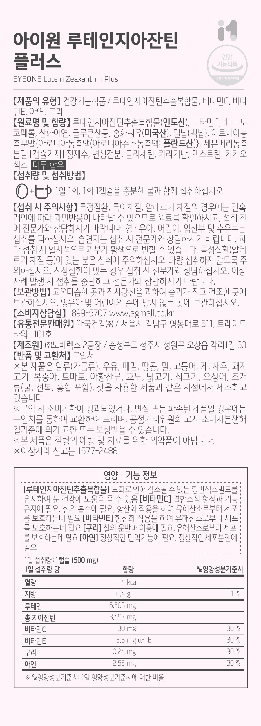 [첫구매] 아이원 루테인 지아잔틴 플러스 *개별인정형원료 90캡슐 (3개월분)