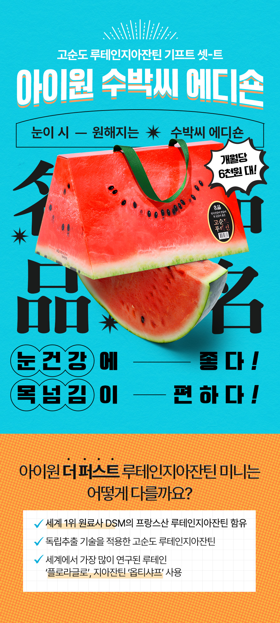 [수박씨 루테인 선물세트]아이원 더 퍼스트 루테인 지아잔틴 미니 60캡슐 4박스 (8개월분)