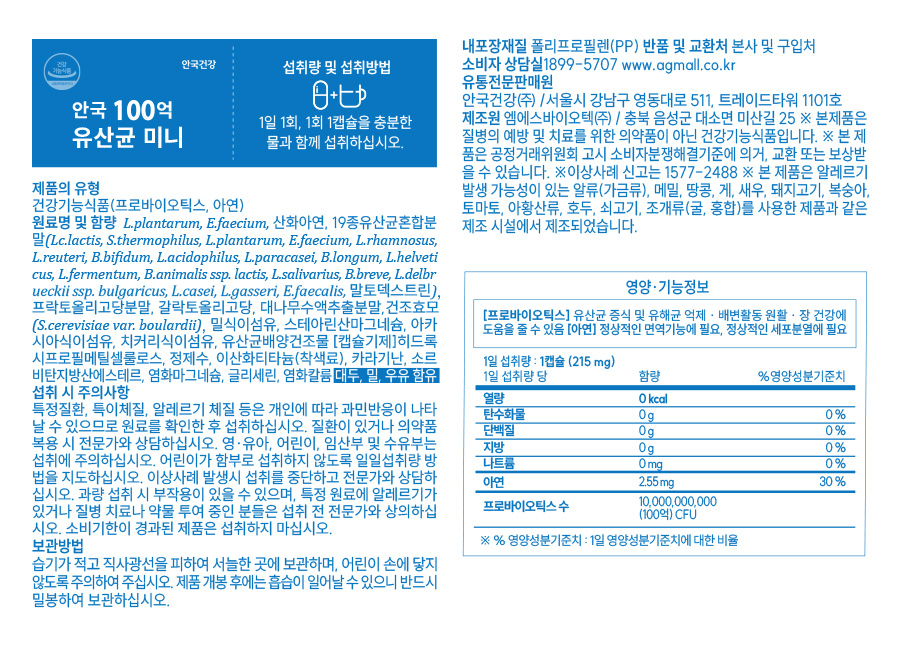 [안국건강] 안국 100억 유산균 미니 60캡슐 (2개월분)