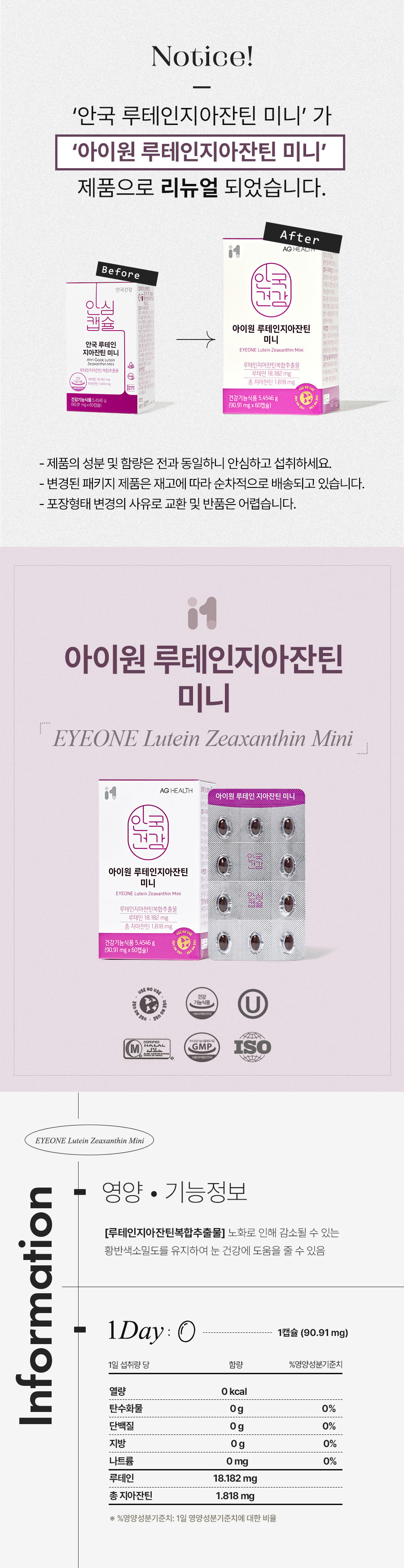 [안국건강] 아이원 루테인 지아잔틴 미니 60캡슐 (2개월분)